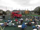 天気もなんとかもち、予定通り消防写生会を行いました。 子どもたちは、間近で消防車...