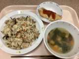 こんだて ひじきごはん 豆腐スープ スズキのからあげ チリソ...