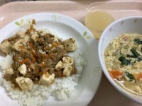 献立 麻婆豆腐丼 にらたまスープ リンゴゼリー 牛乳 新しい生活にだいぶなれてき...