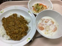 献立 キーマカレー 白菜キムチ フルーツヨーグルト 牛乳 今日はキーマカレーに大...