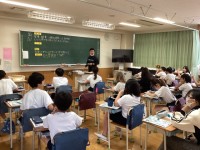 あいさつをすることのよさや、時と場合に応じて使うあいさつをみんなで考えていました...