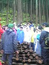 小雨の中、農作業体験としてしいたけの植え付けをしました。秋には立派なしいたけに育...