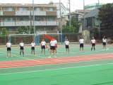 リレーの練習が始まっています。バトンの受け渡しのタイミングをチームごとに確認。1...