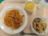 献立 スパゲティナポリタン 油揚げのサラダ ケークサレ 牛乳 セロリ(福岡) ...