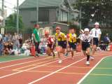 5、6年生徒競走です。担任の先生も心配そう・・・