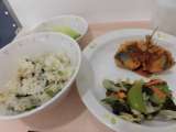 献立 菜飯 あじのフライ 春野菜とわかめのサラダ メロン 牛乳 米 ...