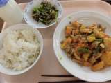 献立 ごはん 家常豆腐 もやしときゅうりのごま風味 牛乳 米 青森...