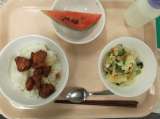 献立 かつおの揚げに丼 みそドレサラダ 牛乳 米(秋田) かつお(高知) 大根...