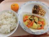 献立 ごはん アジのトマトカレーソース オクラともやしの煮びたし サツマイ...