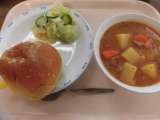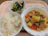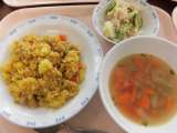 献立 カレーピラフ コンソメスープ ツナサラダ 牛乳 米 青森 鶏肉...