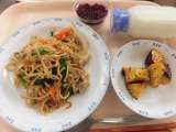 献立 塩焼きそば 大学いも あじさいゼリー 牛乳 ぶたにく 青森 た...