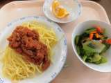 献立 スパゲティミートソース 青菜のサラダ 雪中甘夏 今日のサラ...