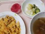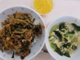 献立 キムチ丼 わかめと卵のスープ フルーツゼリー 牛乳 ...