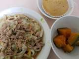 献立 冷しゃぶうどん かぼちゃの含め煮 きなこむしパン 牛乳 ...