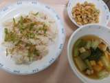 献立 ツナずし 豚肉のはりはり汁 ぽりぽり大豆 牛乳 今日...