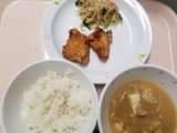 献立 チキンライス きゃべつの甘酢かけ かぼちゃケーキ 牛乳 ...