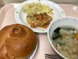 献立 黒砂糖パン サバのエスカベッシュ こふきいも きゃべつと...