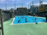 3・4年生もプール開きを行いました。 宝探しで、水中の輪っかを拾っていました。