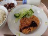 献立 ごはん とんかつ又はチキンソテー 野菜のひとしお 金時豆の甘煮 牛乳...