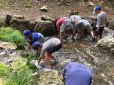 下山後、てんぐ山公園でマスつかみを行いました。登山で暑くなった身体を一気にクール...