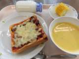 献立 ピザトースト キャロットポタージュ 蒸しトウモロコシ 牛乳 採れた...