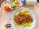 献立 ダールカレー 野菜のレモン醤油 冷凍みかん 牛乳 米...
