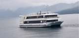 遊覧船ではしゃぐ子どもたち。船内も快適でした。シュークリーム島が見えました。