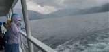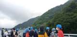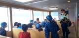 雨がやみ、デッキに上がり、興奮さめやらぬ子どもたち。陸の人に手を振っています。