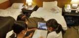 オンラインレク。 タブレット端末を使って、部屋ごとに答えます。 はしめに係が準備...
