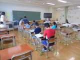 わくわくサマースクール3日目の様子です。5年1組は三角形の作図、6年1組は円の...