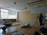 壁やホワイトボードも全てはがして、リニューアルします。壁をはがす作業が大変そう...