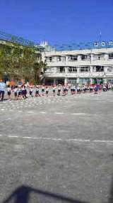 高学年のリーダーが見本となって、運動会で行う、全校なわとびの練習を朝の運動の時間...