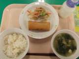 献立 ごはん 春巻き もやしのナムル 青梗菜のスープ 牛乳 ねぎ(秋田) にん...