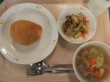 献立 焼きカレーパン ポトフ こんにゃくサラダ 牛乳 豚肉、にんにく(青森) ...