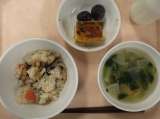 献立 里芋ごはん 月見汁 ひじきの卵焼き ぶどう 牛乳 鶏肉(岩手、宮崎) 卵...