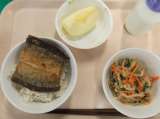 献立 さんまのかば焼き丼 野菜のごま酢かけ りんご 牛乳 米(秋田) さんま(...