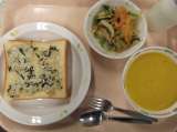 献立 しらすトースト かぼちゃのポタージュ 糸寒天サラダ 牛乳 鶏肉(岩手、宮...
