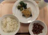 献立 ご飯 鮭のねぎ味噌焼き きゅうりの南蛮漬け 金時豆のあま煮 米(秋田) ...