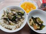 献立 鶏飯 厚揚げの煮びたし フルーツポンチ 牛乳 たまご ...