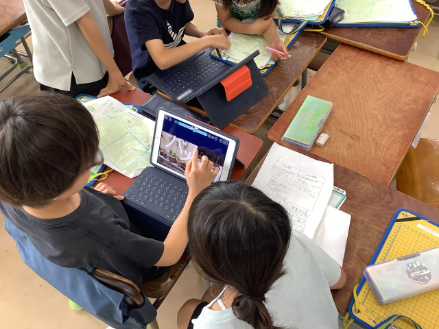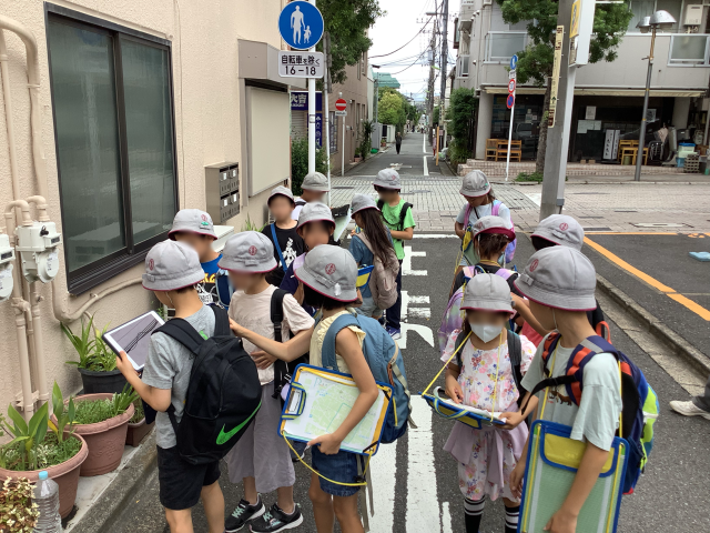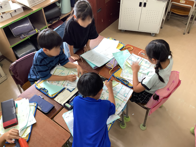 警察の方と実際に地域を歩き、安全な場所や危険に見える場所を確認しました。情報を共有して、マップにまとめています。