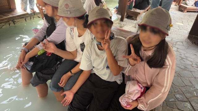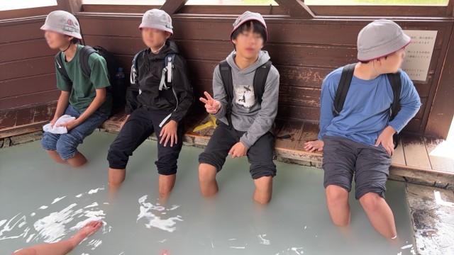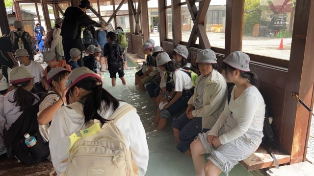 足湯の体験もしました。大変気持ちよかったそうです!