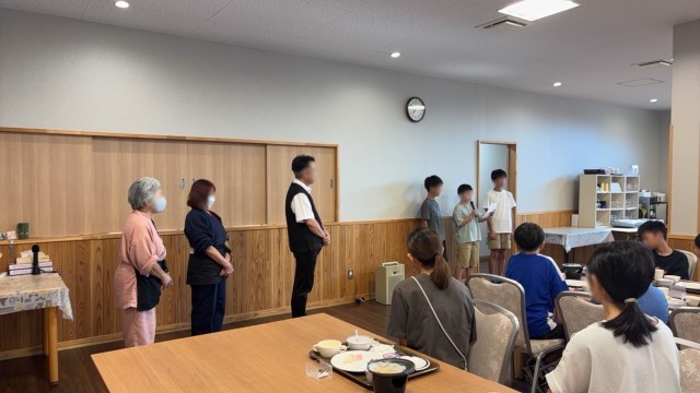 閉館式の様子です。3日間お世話になった宿の人に感謝を伝えています。