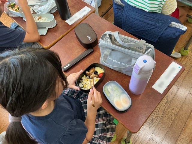 お家からお弁当を持ってきた子も、お弁当を頼んだ子も、お互いのお弁当が美味しそうだと笑顔で食べていました。
