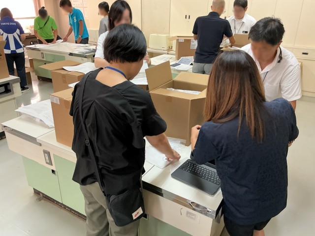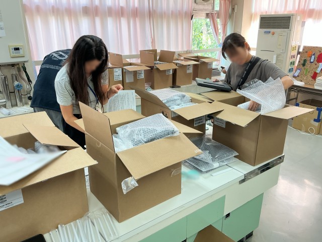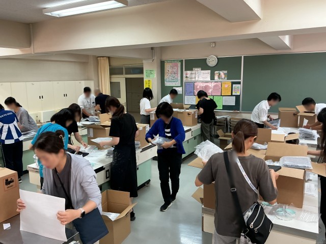 今月中に新しいiPadに変わります。教職員全員で児童のiPadを1台ずつ確認し、名前のシールやアカウントを確認しています。