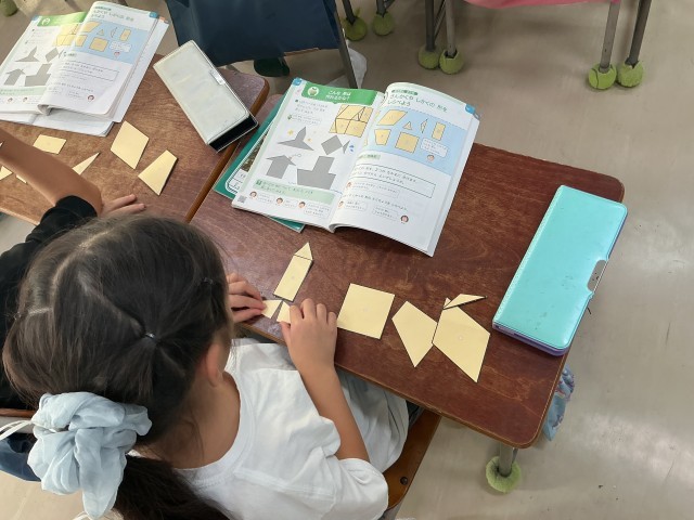 10/2(木) 2年生 算数 「さんかくやしかくの形をしらべよう」
