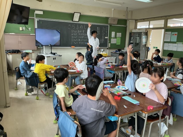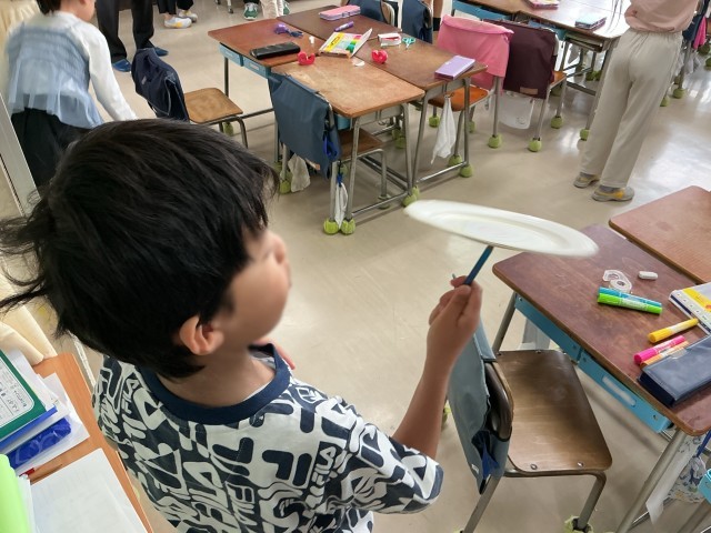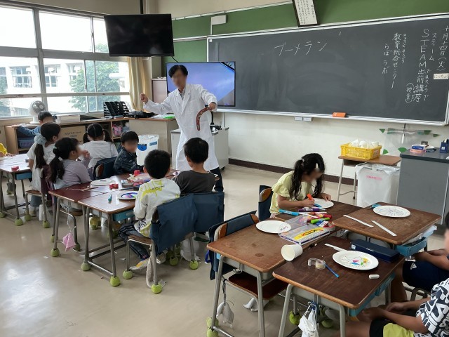 世田谷区教育委員会よりSTEAM教育の一環として、出前授業を実施しました。講師の先生を招き、ブーメランや皿回しの道具を自作し、実際に試しました。
