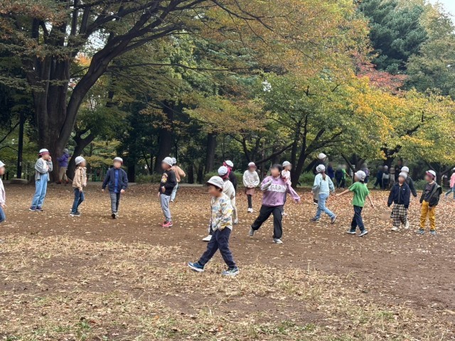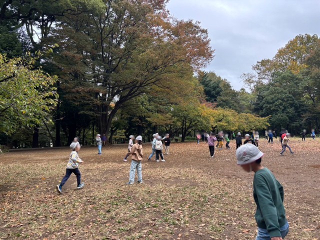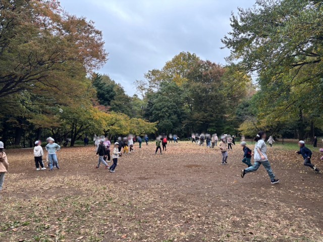 林試の森公園に到着しました。クラス遊びの中でたくさんの友達と交流しています。