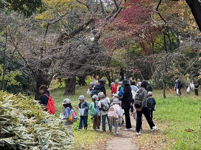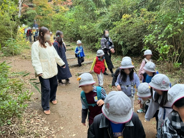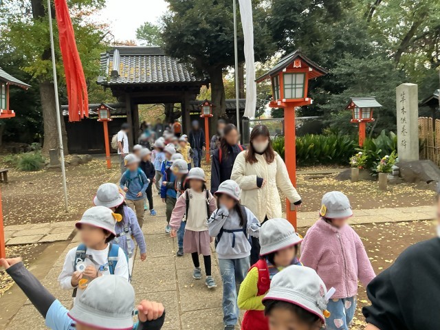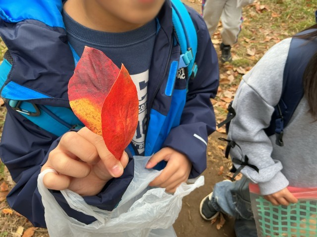 等々力不動尊へ行き、色とりどりの落ち葉を拾いました。保護者の皆様にもご協力いただきました。ありがとうございます。