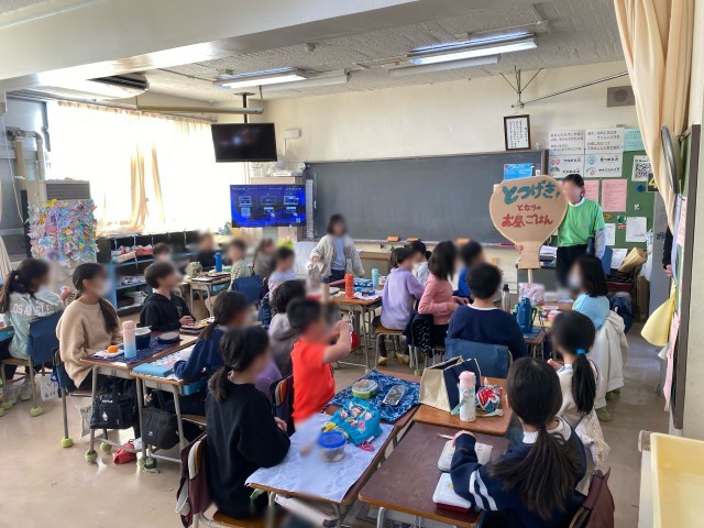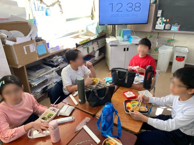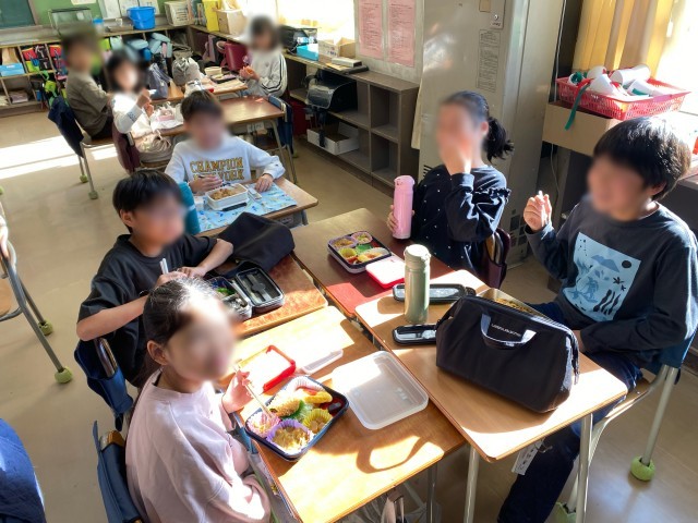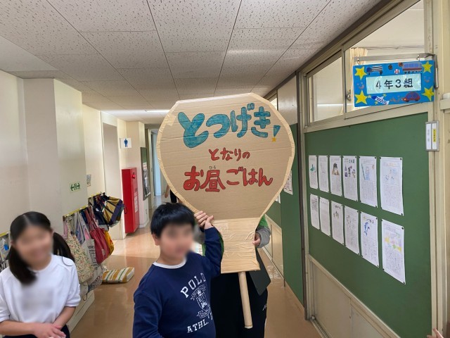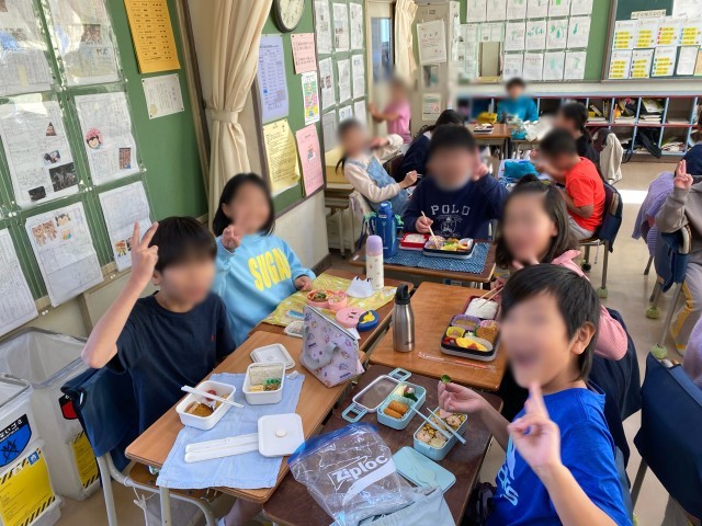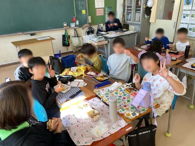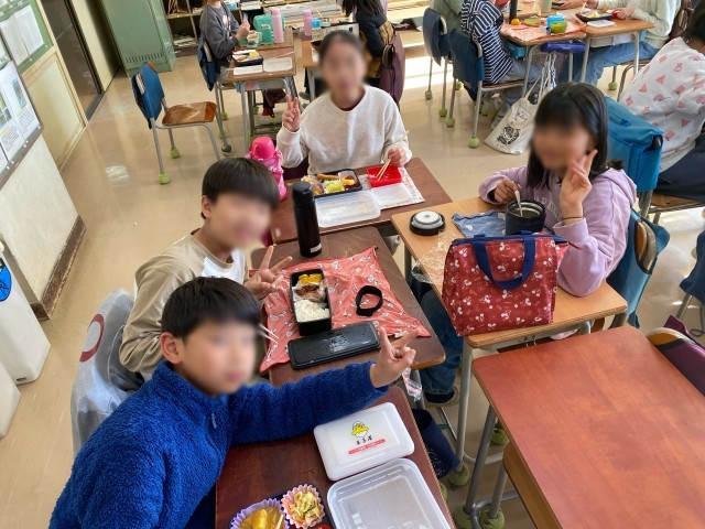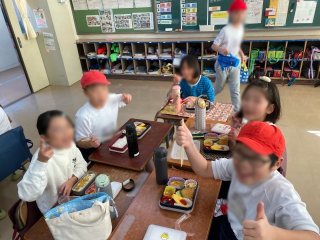 どこかで見たことがある大きなしゃもじを持って、楽しくお弁当を一緒に食べました。