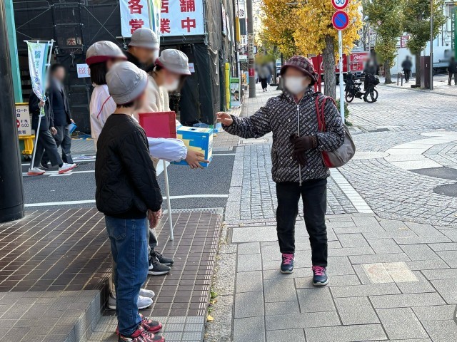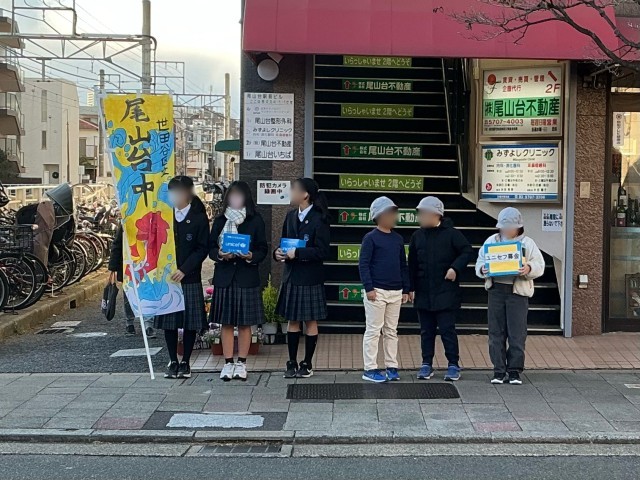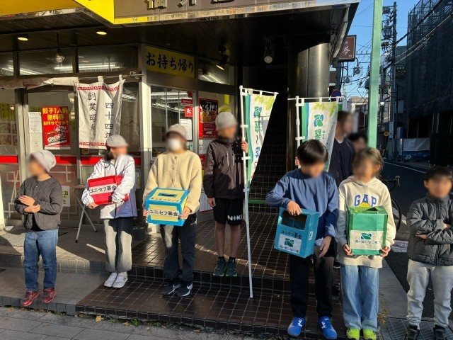 運営委員会の子どもたちが、尾山台駅周辺でユニセフ募金活動を行いました。玉堤小学校と尾山台中学校と共同で行いました。
